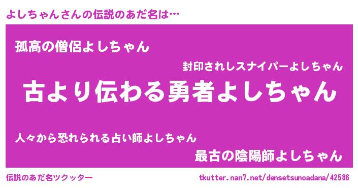 | 男性向けラノベタイトル風あだ名 | 『よしちゃんという概念が存在しない退屈な世界 』 |