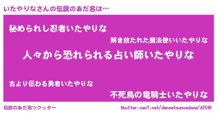 | 男性向けラノベタイトル風あだ名 | 『イタヤリナスレイヤー』 |
