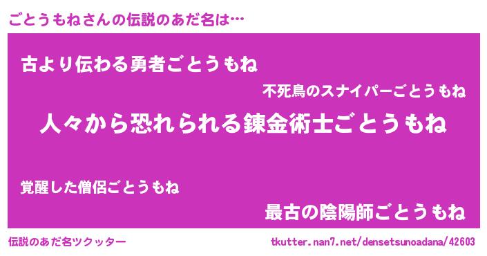| ヒーロー風カッコイイあだ名 | 『正義の使者ごとうもね』『仮面ゴトダー』 |