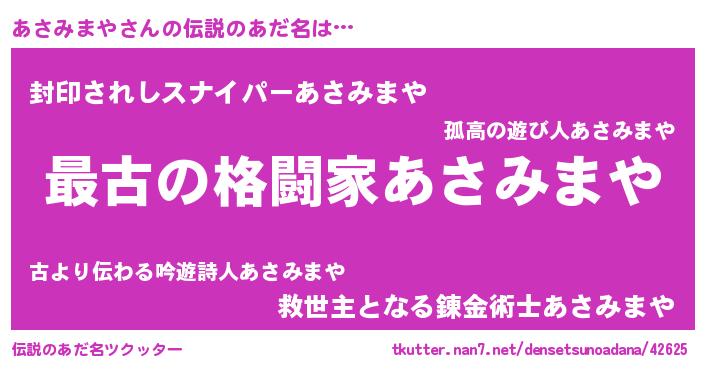 | ファンタジー風あだ名 | 『エターナルアサミマヤー』『アサフェル』 |