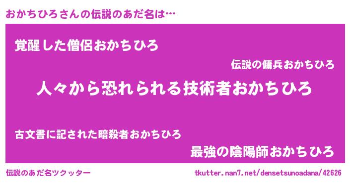 | ヒーロー風カッコイイあだ名 | 『友情の使者おかちひろ』『炎刃騎士オカ』 |
