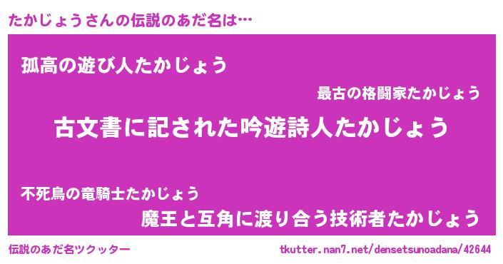 | 意味不明あだ名 | 『自称たかじょう』『永久保存たかじょう』 |