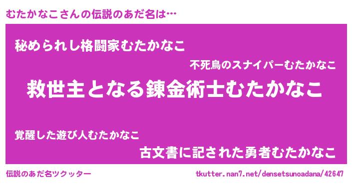 | ヒーロー風カッコイイあだ名 | 『仮面ムタダー』『慈愛の使者むたかなこ』 |