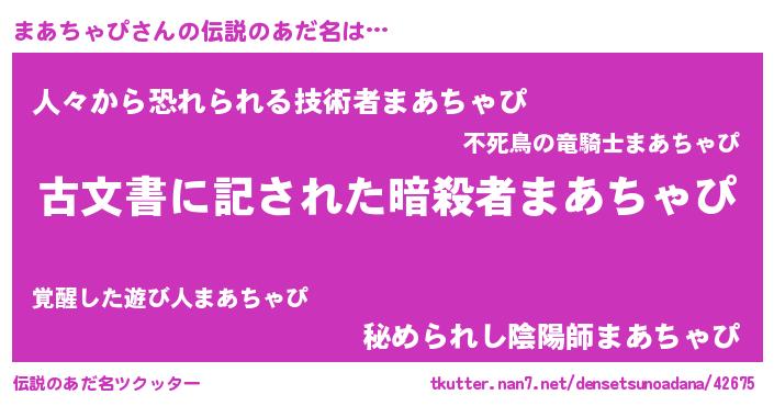 | 意味不明あだ名 | 『永久保存まあちゃぴ』『自称まあちゃぴ』 |