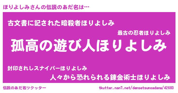| 胡散臭い通販商品みたいなあだ名 | 『信頼と実績のペンダント…その名も「ほりよしみ」』 |