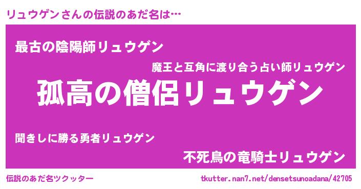 | 意味不明あだ名 | 『とにかく怪しいリュウゲン』 |