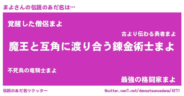 | ヒーロー風カッコイイあだ名 | 『慈愛の使者まよ』『仮面マヨダー』 |