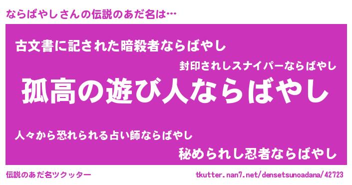 | ヘコむあだ名 | 『ならっちょ』『ならばやし(爆)』 |