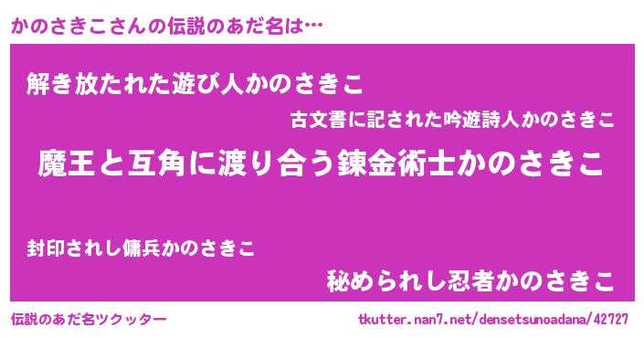 | 女子向けラノベタイトル風あだ名 | 『かのさきこ恋絵巻』『闇のかのさきこ』 |