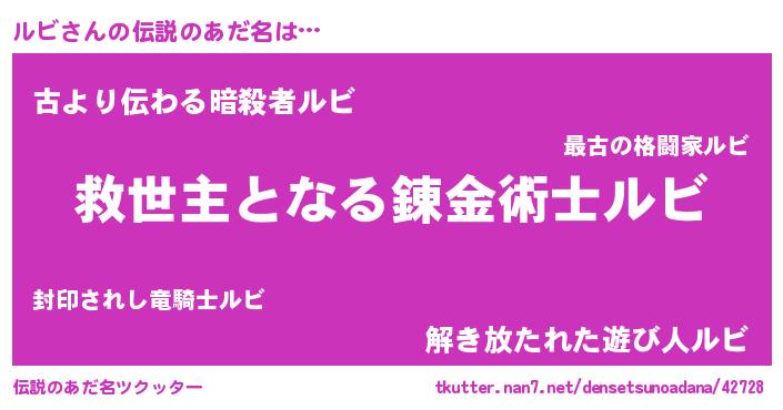 | ヒーロー風カッコイイあだ名 | 『天空の使者ルビ』『ネオルビ』 |