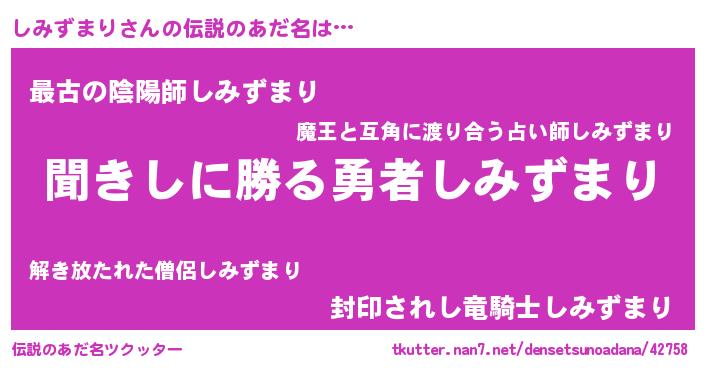 | ヒーロー風カッコイイあだ名 | 『仮面シミダー』『ネオシミズマリ』 |