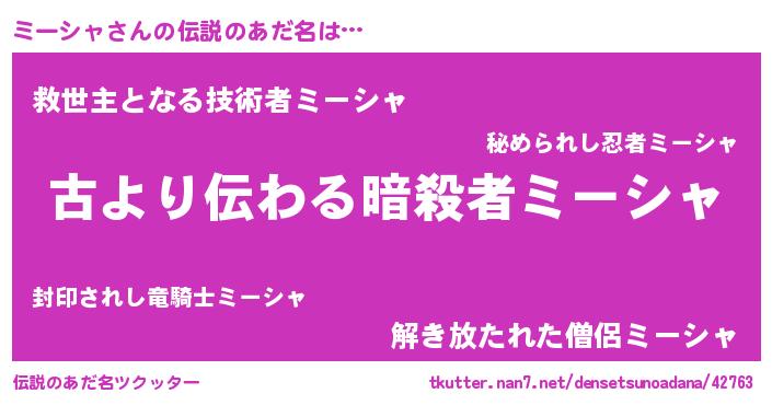 | 意味不明あだ名 | 『永久保存ミーシャ』『自称ミーシャ』 |