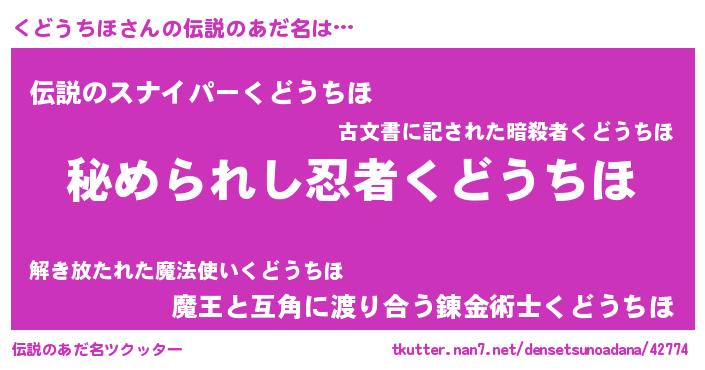 | ヒーロー風カッコイイあだ名 | 『仮面クドダー』『最強戦士クドウチホ』 |