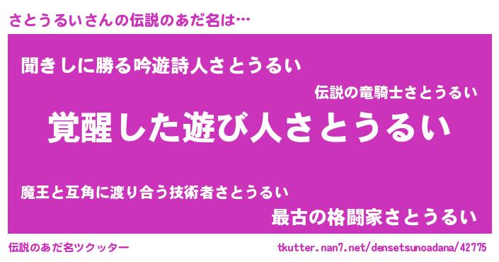 | ポケモン風あだ名 | 『ヒサトウルイ』『ゼニサト』 |