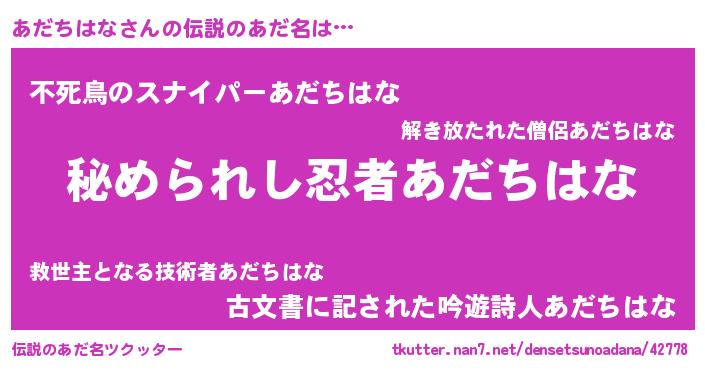 | ヒーロー風カッコイイあだ名 | 『ウルトラ戦士アダチハナ』 |