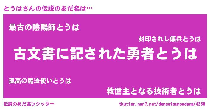 | ヒーロー風カッコイイあだ名 | 『究極戦士トウハ』『ネオトウハ』 |