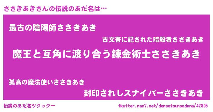 | 女子向けラノベタイトル風あだ名 | 『ささきあき恋絵巻』 |