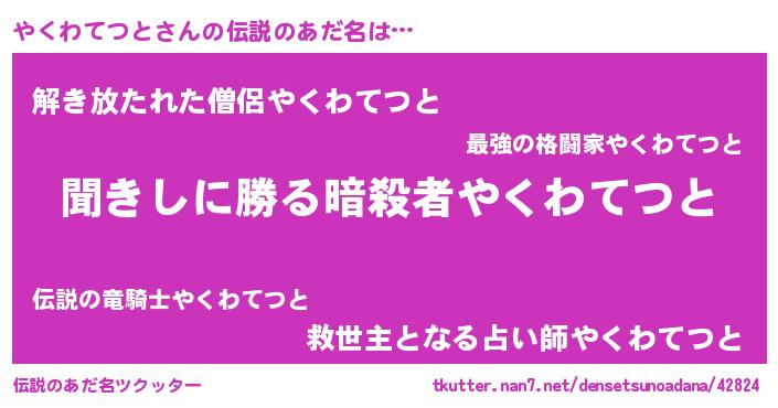 | ヒーロー風カッコイイあだ名 | 『ウルトラ戦士ヤクワテツト』 |