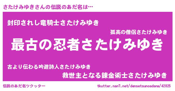 | 意味不明あだ名 | 『住所不定無職さたけみゆき(43歳)』 |