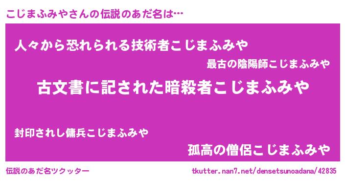 | ヒーロー風カッコイイあだ名 | 『ネオコジマフミヤ』『仮面コジダー』 |