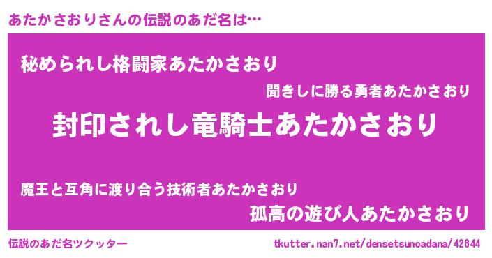 | 胡散臭い通販商品みたいなあだ名 | 『億万長者になれるブレスレット…その名も「あたかさおり」』 |