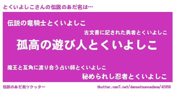 | 意味不明あだ名 | 『とにかく怪しいとくいよしこ』 |