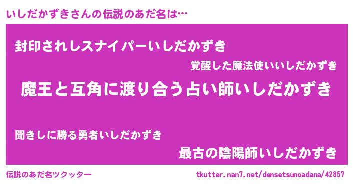 | 男性向けラノベタイトル風あだ名 | 『いしだかずきに滅ぼされるだけの簡単なお仕事です』 |