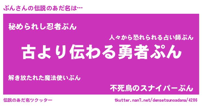 | ファンタジー風あだ名 | 『プンディッシュ』『エターナルプンー』 |