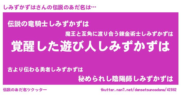 | ポケモン風あだ名 | 『シミキング』『ヒシミズカズハ』 |