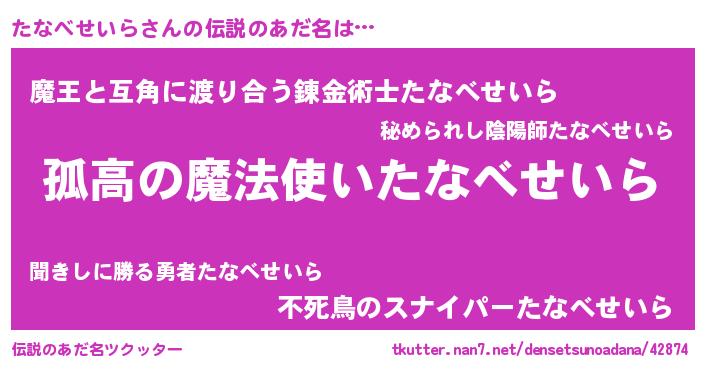 | ヒーロー風カッコイイあだ名 | 『暗黒騎士タナ』『スーパータナベセイラ』 |