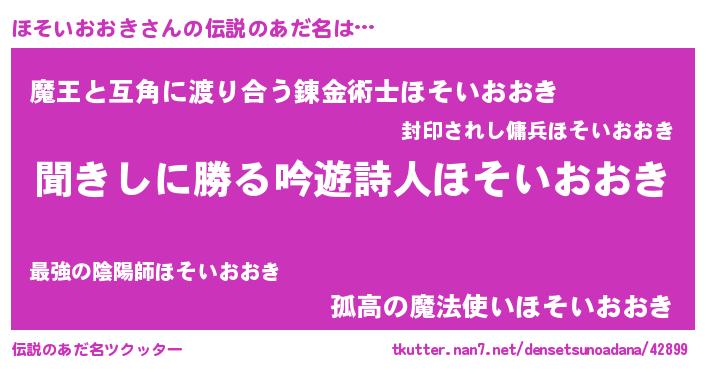 | ヒーロー風カッコイイあだ名 | 『ネオホソイオオキ』『仮面ホソダー』 |