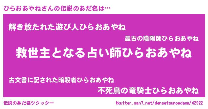 | ヒーロー風カッコイイあだ名 | 『天空の使者ひらおあやね』 |
