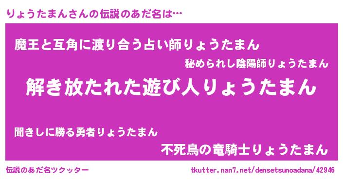 | 意味不明あだ名 | 『住所不定無職りょうたまん(93歳)』 |