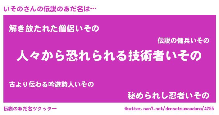 | 意味不明あだ名 | 『自称いその』『眠気覚ましガムいその味』 |