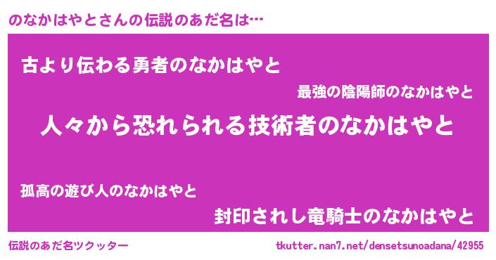| ヒーロー風カッコイイあだ名 | 『仮面ノナダー』『ネオノナカハヤト』 |