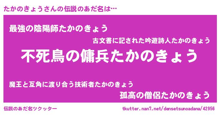 | 女子向けラノベタイトル風あだ名 | 『たかのきょう姫と円卓の騎士』 |