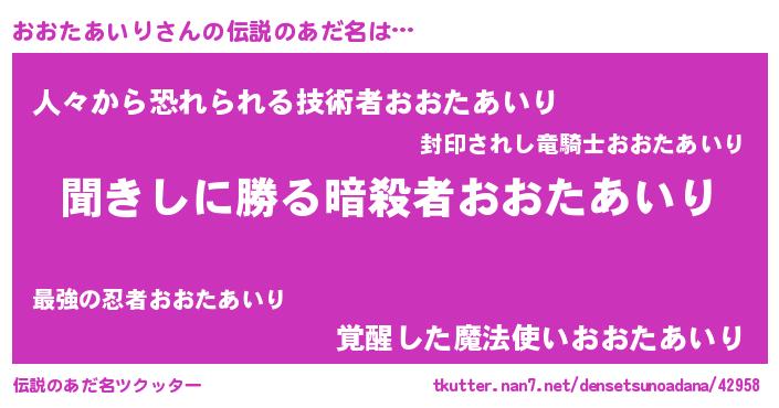 | 意味不明あだ名 | 『永久保存おおたあいり』 |