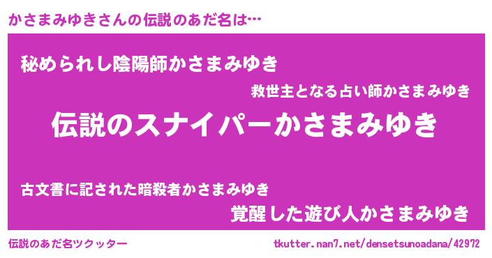 | ヒーロー風カッコイイあだ名 | 『スーパーカサマミユキ』『仮面カサダー』 |