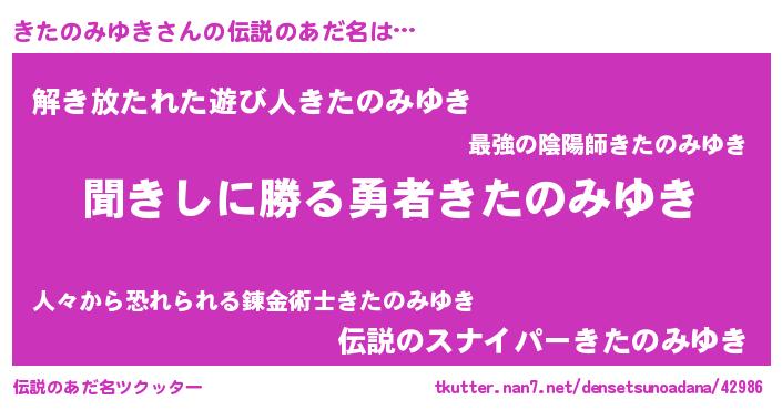 | 意味不明あだ名 | 『永久保存きたのみゆき』 |