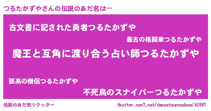 | 意味不明あだ名 | 『住所不定無職つるたかずや(39歳)』 |