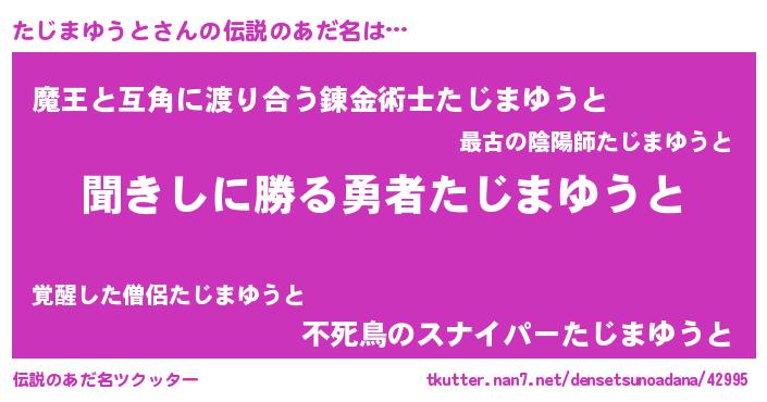 | ヘコむあだ名 | 『たじまゆうと(苦笑)』『たじっふぃ~』 |