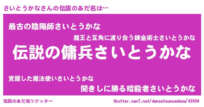 | 胡散臭い通販商品みたいなあだ名 | 『必ず成功する水晶球…その名も「さいとうかな」』 |