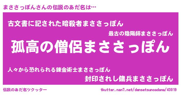 | 男性向けラノベタイトル風あだ名 | 『ダンジョンにまささっぽんを求めるのは間違っているだろうか』 |