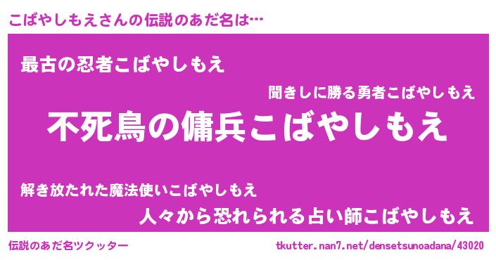 | ヒーロー風カッコイイあだ名 | 『サイバー戦士コバヤシモエ』 |