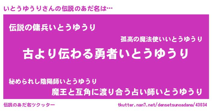 | ヒーロー風カッコイイあだ名 | 『ネオイトウユウリ』『魔戒騎士イト』 |