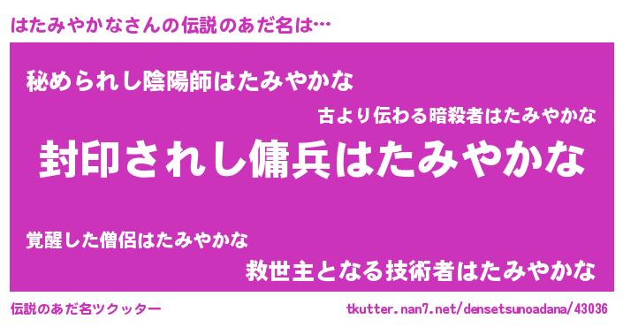 | 胡散臭い通販商品みたいなあだ名 | 『億万長者になれる水晶球…その名も「はたみやかな」』 |