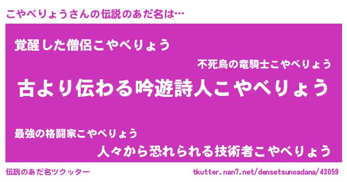 | 男性向けラノベタイトル風あだ名 | 『こやべりょうという概念が存在しない退屈な世界 』 |