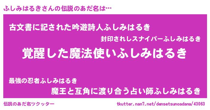 | ヘコむあだ名 | 『ふしを』『ふしみはるき(小並感)』 |