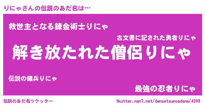 | 意味不明あだ名 | 『とにかく怪しいりにゃ』『自称りにゃ』 |