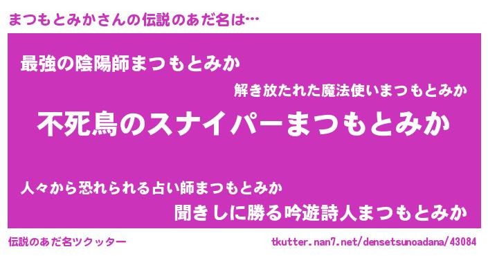 | ヒーロー風カッコイイあだ名 | 『スーパーマツモトミカ』『仮面マツダー』 |